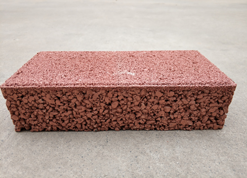 透水磚選用米石、礦渣、廢舊混凝土、煤矸石等為主要原料,外添加水泥、粉煤灰作為粘結(jié)劑,通過混勻、攪拌、壓力成型,底部材料具有明顯縫隙可以看出其透水性。